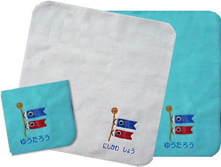 こどもの日名前入りハンカチ/こいのぼり価格: 420円レビュー評価: 0.0 レビュー数:0 商品名 こいのぼり アイテム ハンカチタオル サイズ 22cm×22cm 色 スカイブルー オフホワイト 全体 デザイン こどもの日にピッタリ!! 男の子の大好きな かわいいコイノボリの刺繍が入った 名前入りタオルハンカチ 初節句の記念に、お誕生会のプレゼントに大人気です。 表はベルベットのようなシャーリング生地、裏はパイルになっています。 ハンカチのサイズは22cm 色はスカイブルーとオフホワイト 柄の下にご希望の名前を刺繍します。 |